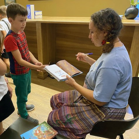 Наша "Вишенька" завжди дбає про читацькі потреби дітей та підлітків. Під час вінницького фестивалю VINBOOKfEST-2025 було запрошено чудову письменницю Валентину Захабуру. Зокрема, вчора, 11 вересня у книгарню "Герої" на посиденьки з пані Валентиною завітали маленькі читачі. З перших хвилин запанував гарний натрій, а після представлення нової книжки "Так не буває! Оце так канікули!" градус цікавості іще збільшився. А захопила дітей розповідь про історію написання твору (ідея Андрія Кузьміна), коротенькі уривки з тексту, адже йдеться про історичні та сучасні пригоди мешканців Вінниці.